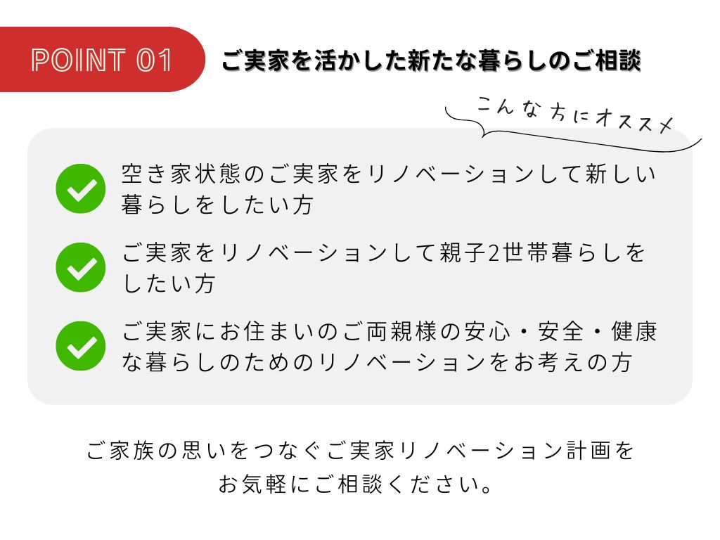 この機会にご実家リノベーションに対するご不安やお悩み事を解消してみませんか?