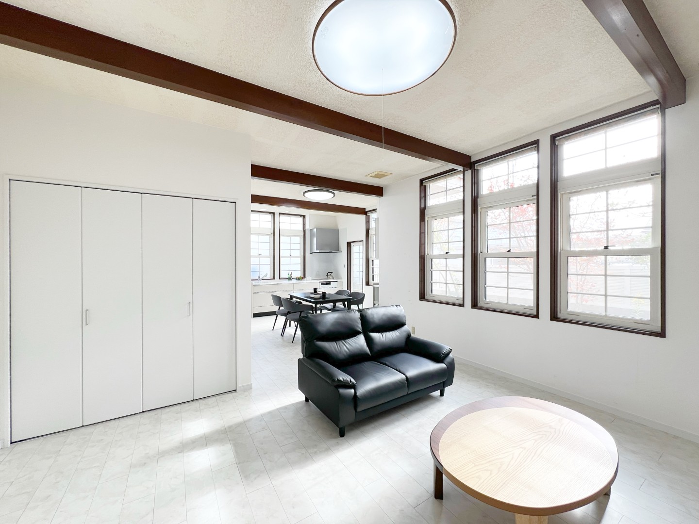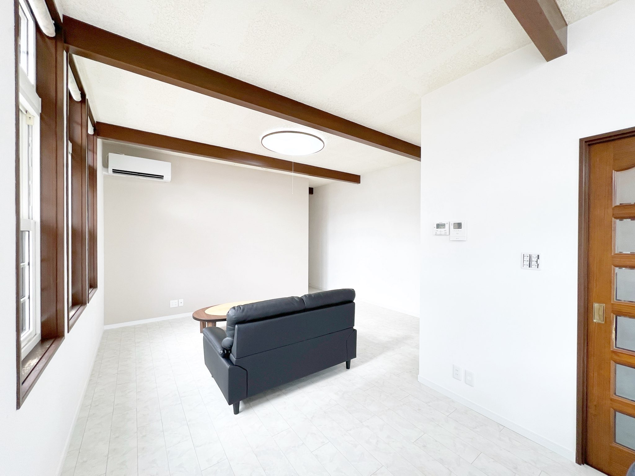 家具で圧迫されていたLDKを整理し、白を基調にした明るい空間へ再構成しました。気持ちよく過ごせる開放的な空間になりました。