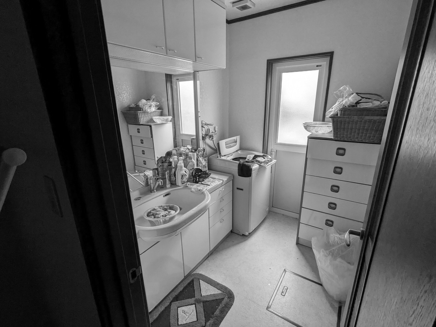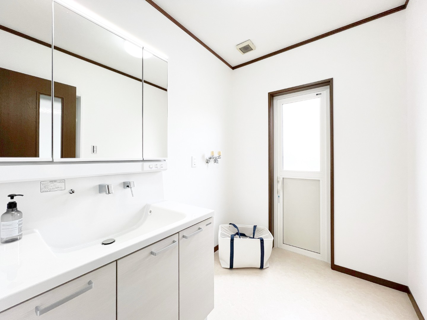 物があふれやすい洗面室を、明るくすっきりした空間に